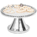 Beautifully crafted stand for freshly baked crust pie or homemade birthday cake, chocolate filled croissants or sugar-dusted cupcakes and much more. With a luxurious design this footed platter is ready to display cakes, cookies, tarts, candies and many more delicious treats and desserts. Timeless design complements any décor and is ideal for both formal or casual dining, perfect for wedding receptions and other special occasions. Handcrafted solid aluminum for long-lasting durability, with a polished chrome finish and beautiful beaded platter design. Measures approximately 6¼" round and 4 inches tall — Food Safe — Wash before use.