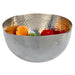 A dimpled hammered silver finish lends an unparalleled look of elegance and refinement. A perfect addition to any table setting for displaying real or faux fruit, as well as serving guests . Timeless design complements any décor and is ideal for both formal or casual dining and entertaining. Handcrafted solid aluminum for long-lasting durability — Wash before use. Measures approximately 14" round and 7½ inches tall.