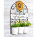 - Wall Décor: The Pots are movable and can be arranged any way you like. Hang all three or only one. The Sign is large and depicts a large sunflower with a white welcome sign. Welcome guests into your garden or into your farmhouse style home.