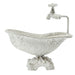 - Design - A very vintage look that will add to your decor. Decorate your bathroom with this old-fashioned tub shaped soap dish. This tub has little feet to keep the bottom clean and mess free. The faucet extends over the bathtub to give you a classic tub view will taking a bath yourself.