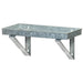 - Ideal for storage and display, this galvanized metal shelf features a simple, rustic design.