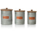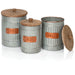 Red Co. Set of 3 Sizes Flour, Coffee, Sugar Corrugated Storage Canister Jars with Lids, Distressed Metal & Wood