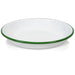 Red Co. Set of 4 Enamelware Metal 10” Round Camping Plates, Solid White/Dark Green Rim