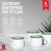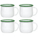 Red Co. Set of 4 Enamelware Metal 13.5 Oz Round Camping Mugs with Handle, Solid White/Dark Green Rim