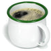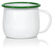- This is a classic mug design, with a smooth, enameled white finish and green rim to complement vintage, rustic, antique, cottage, farmhouse, and country décor