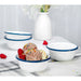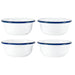 Red Co. Set of 4 Enamelware Metal 7 oz Mini Ice Cream Bowls, Solid White/Navy Blue Rim