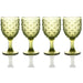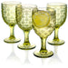 Red Co. Set of 4 Vintage 11 Fl Oz Flower Embossed Glass Stemmed Wine Goblets in Solid Gree