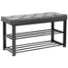 Red Co. Two-Tier Padded Organization and Storage Bench, Shoe Rack with Open Shelves, Charcoal Faux Leather Finish, 31¾" x 12½" x 18"
