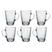 Vega Modern Clear Glass Mug with Handle, Coffee Tea Hot or Cold Drinks, Set of 6, 10 oz